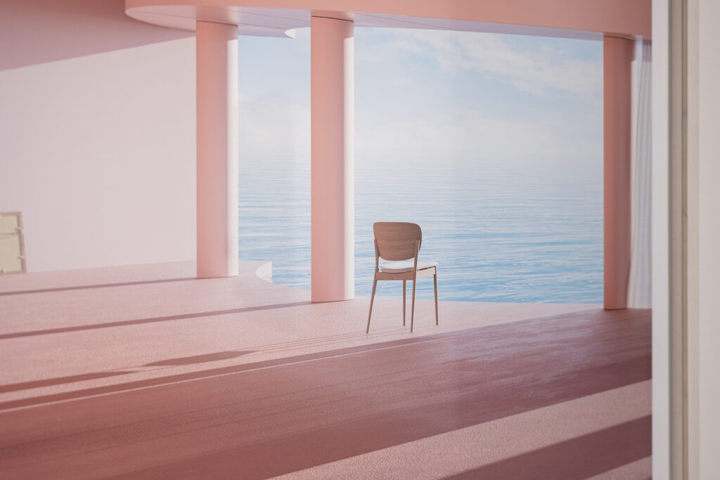 A single chair is placed in an empty room by the ocean. No one is sitting on it, and we cannot tell if its occupant is about to appear or has already gone. It has already been pointed out that the scene in this picture resembles the worldview of Endgame, which ranks alongside Waiting for Godot as one of Beckett’s masterpieces.1*